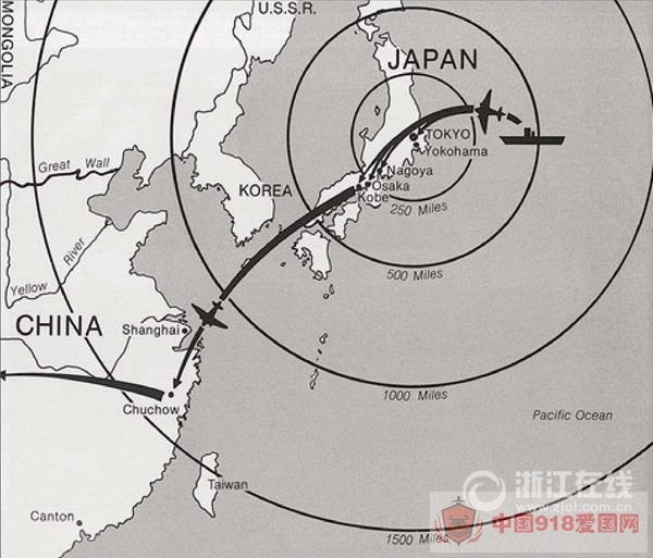 当时美国“东京轰炸”后的飞行计划,chuchow就是衢州。